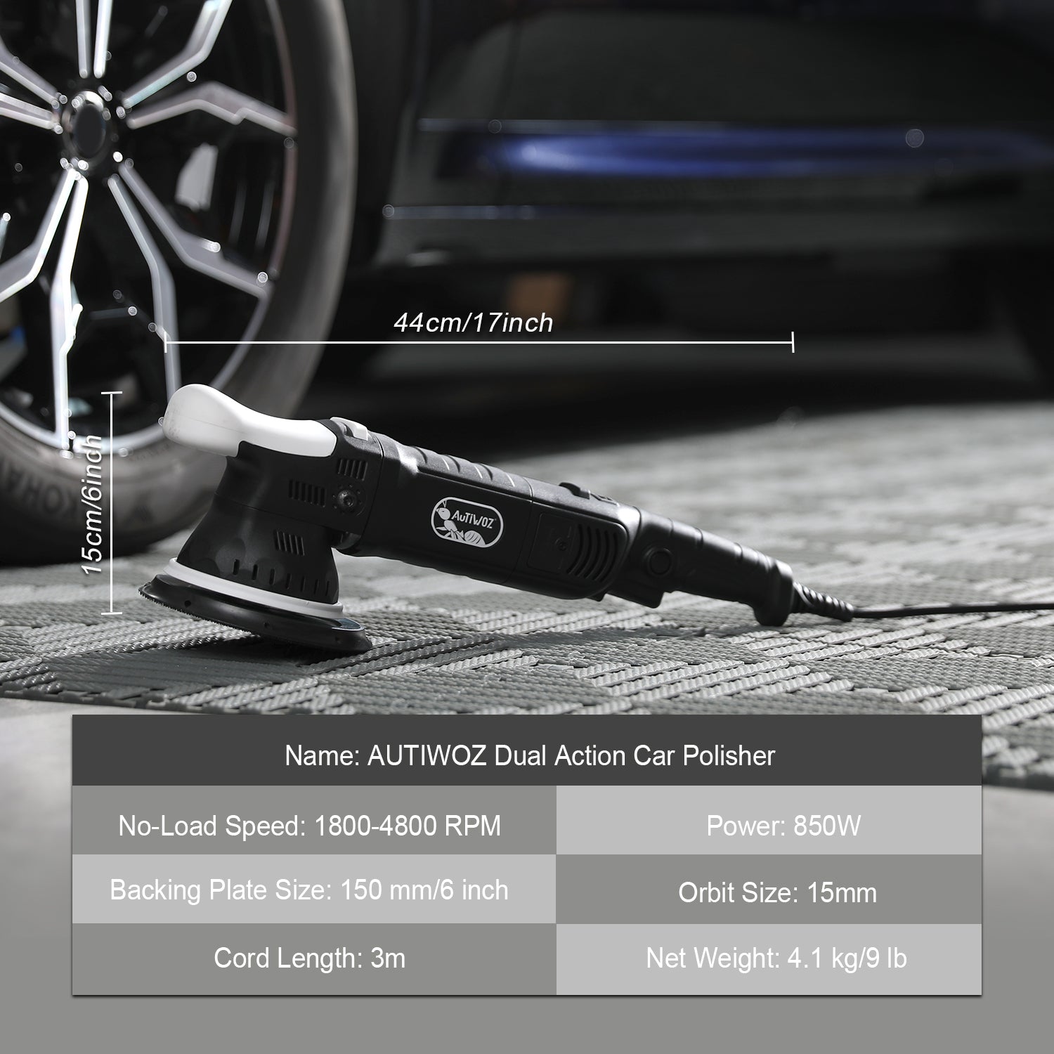 AUTIWOZ Car Buffer Polisher, 6-Inch Dual Action Polisher for Car Detailing, 15mm Random Orbital Car Polisher with 6 Variable Speeds1800-4800RPM, DA Polishers Kit for Car Detailing/Polishing/Waxing